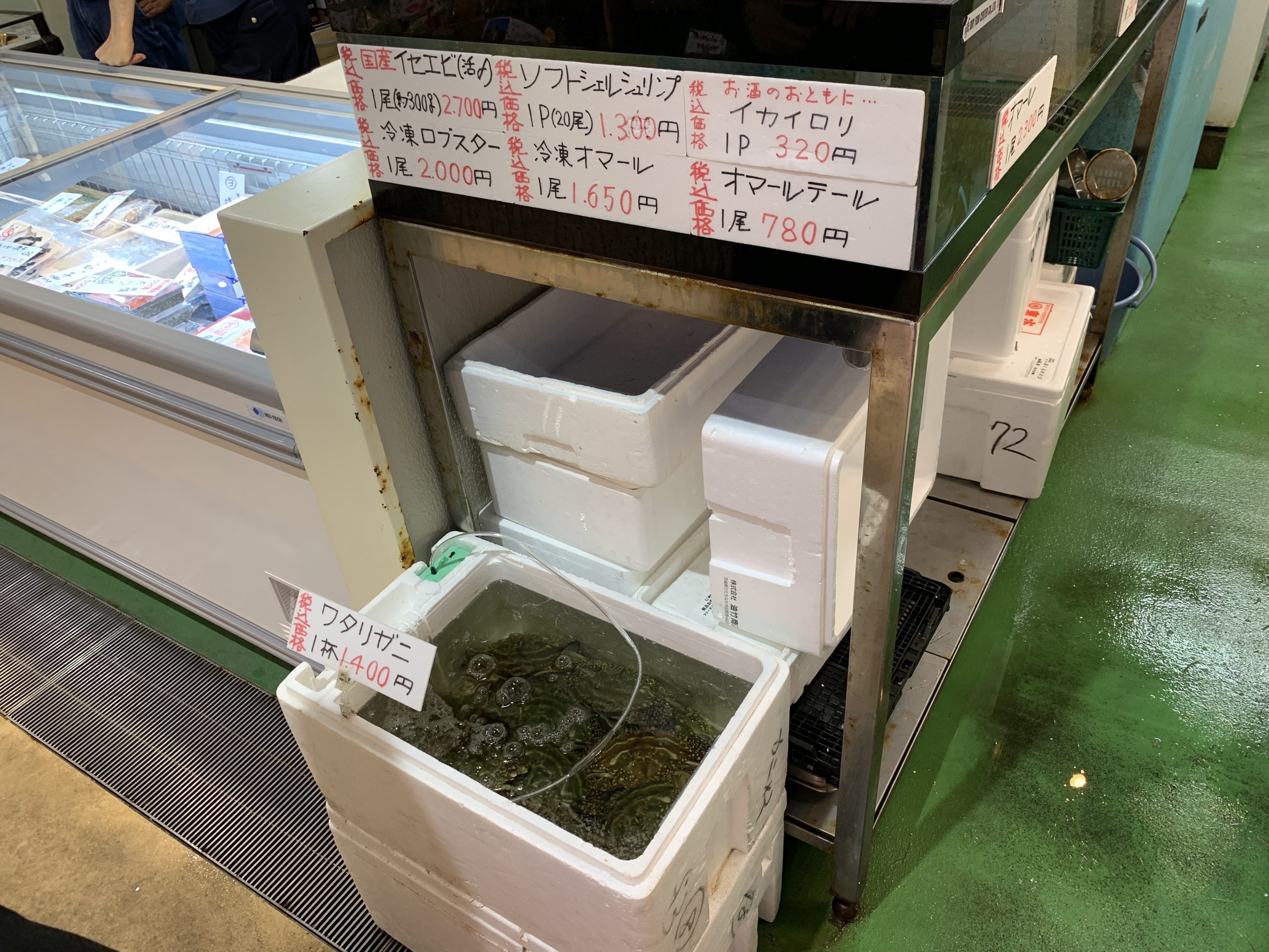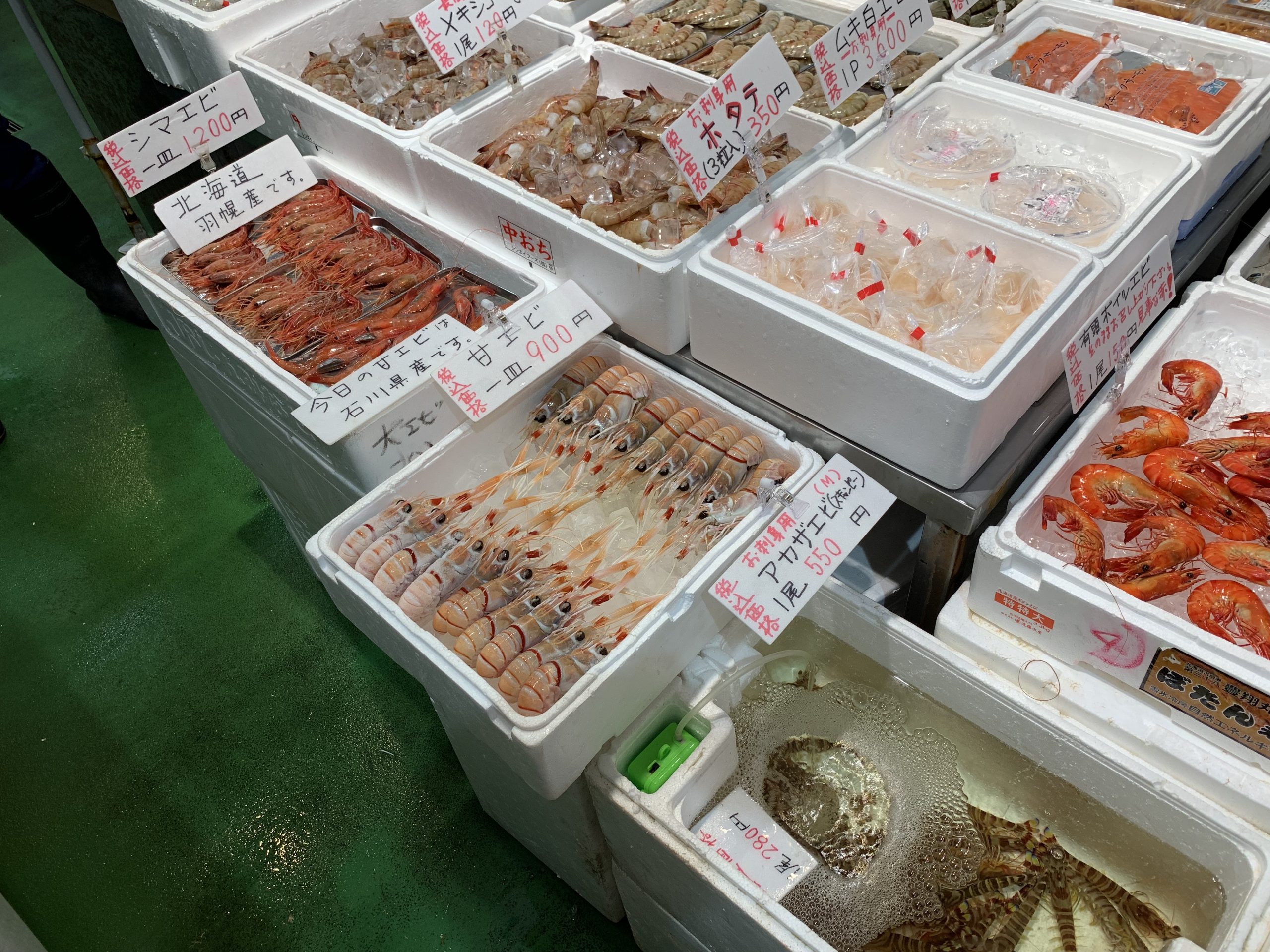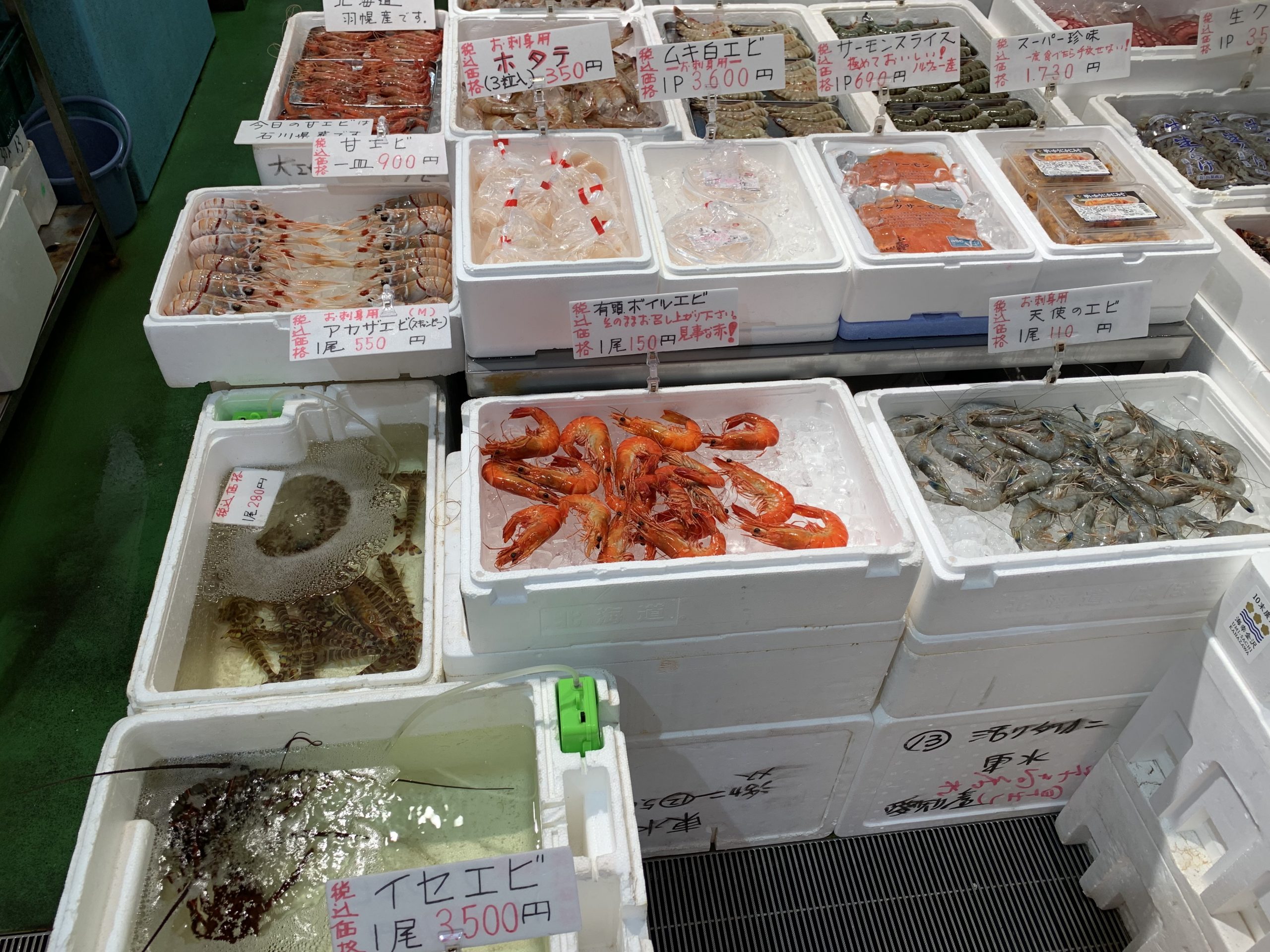 この日もシマエビと甘えびがおススメの刺身えびに!ワタリガニも価格がお手頃でしたので、ご家族分買ってボイルでも全然よさそうな感じでした!