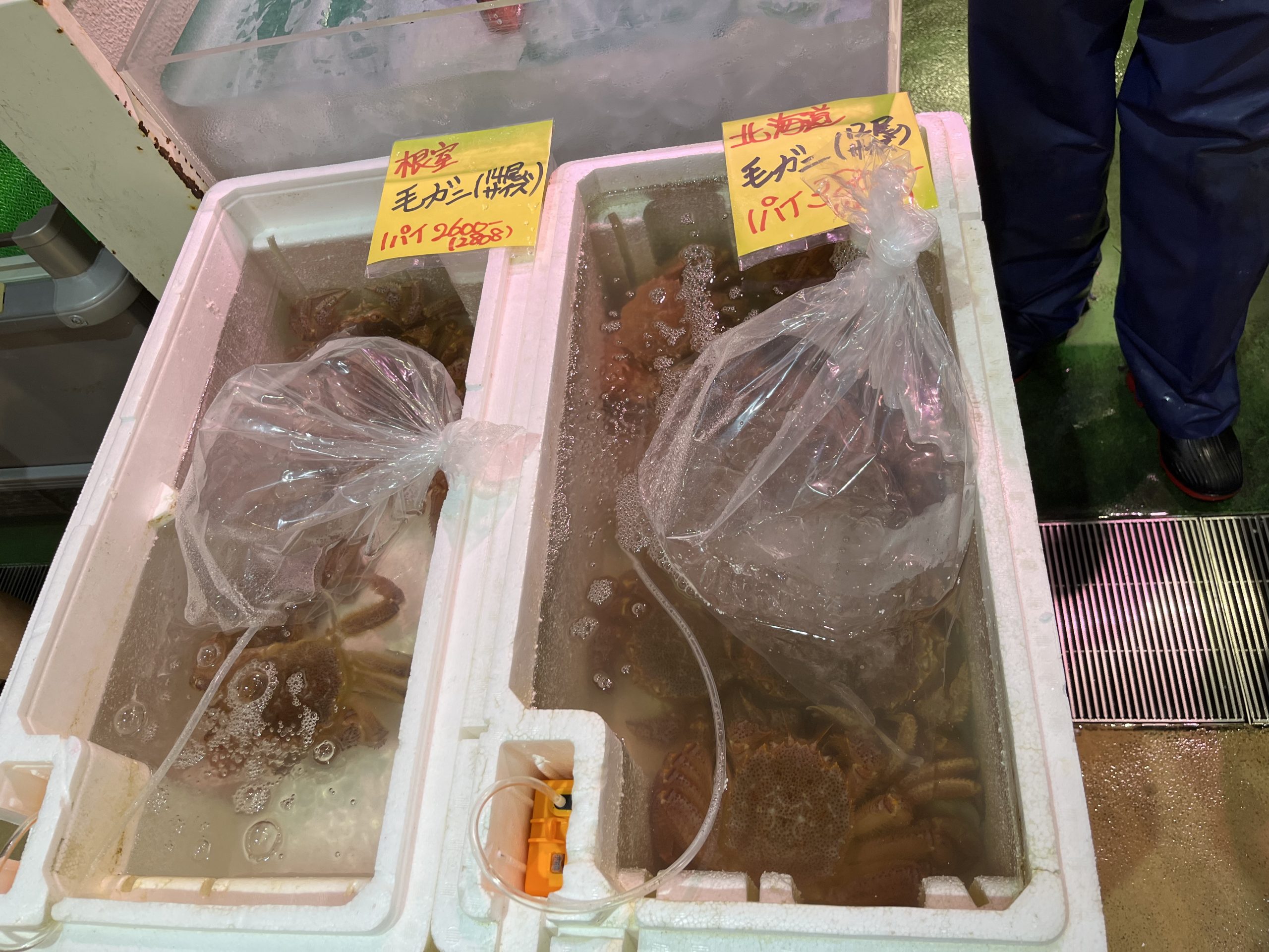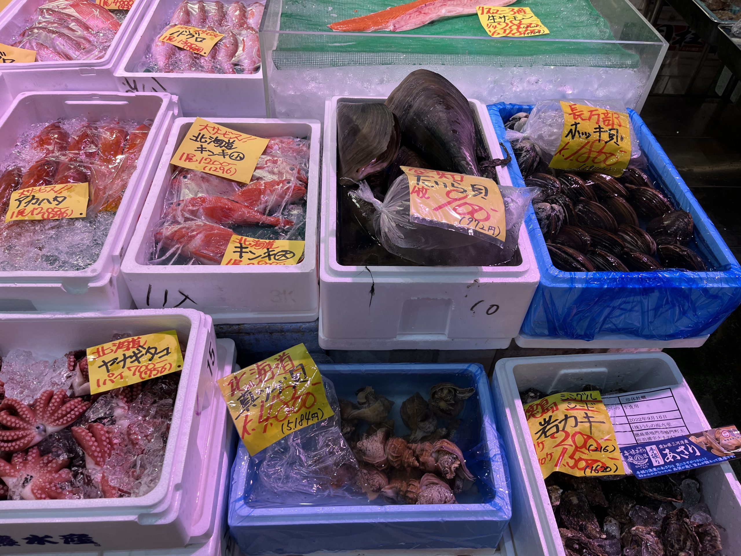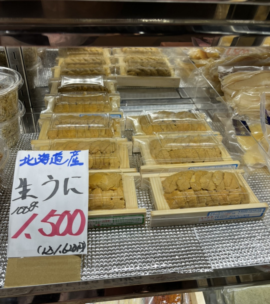 丸集小田原橋さんからは、礼文産のムラサキウニ。「買ってきたばかりのもので、味も本当に美味しいよ!」とのことでした!品質の良いものが税込4500円です!丸集さんで扱うウニの種類はいつも豊富なので、どのウニを買うか悩むという方は、ぜひサブちゃんにご相談くださいね!