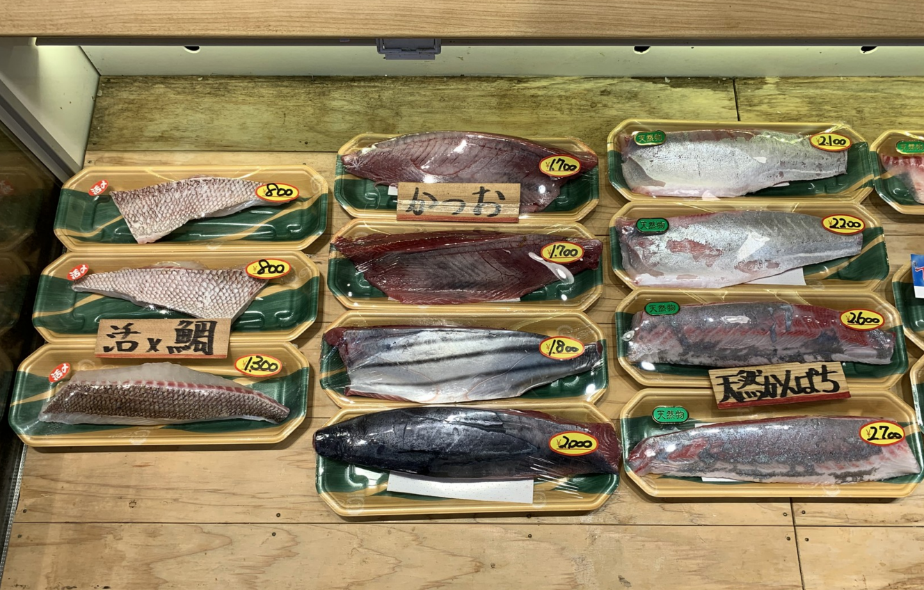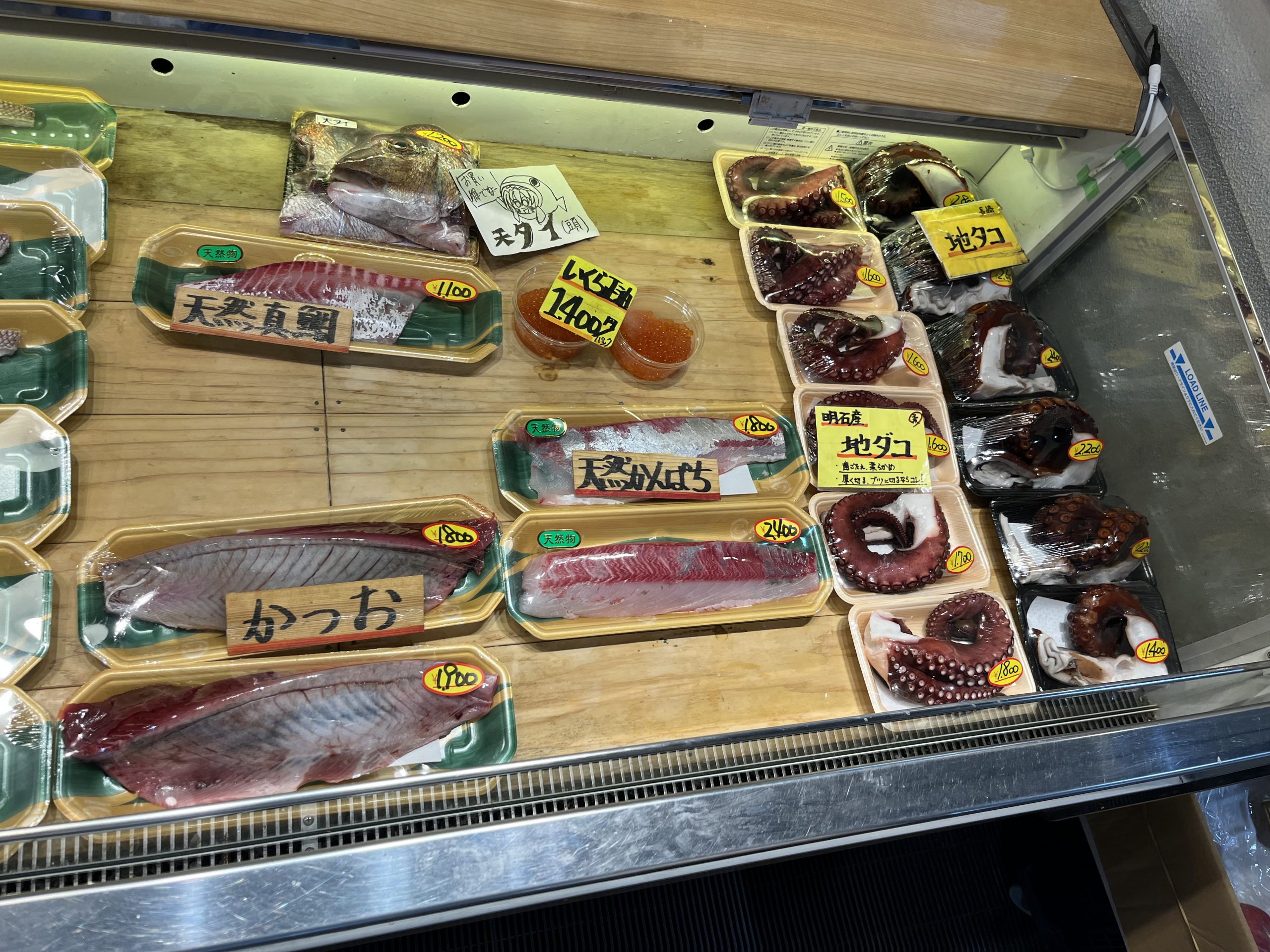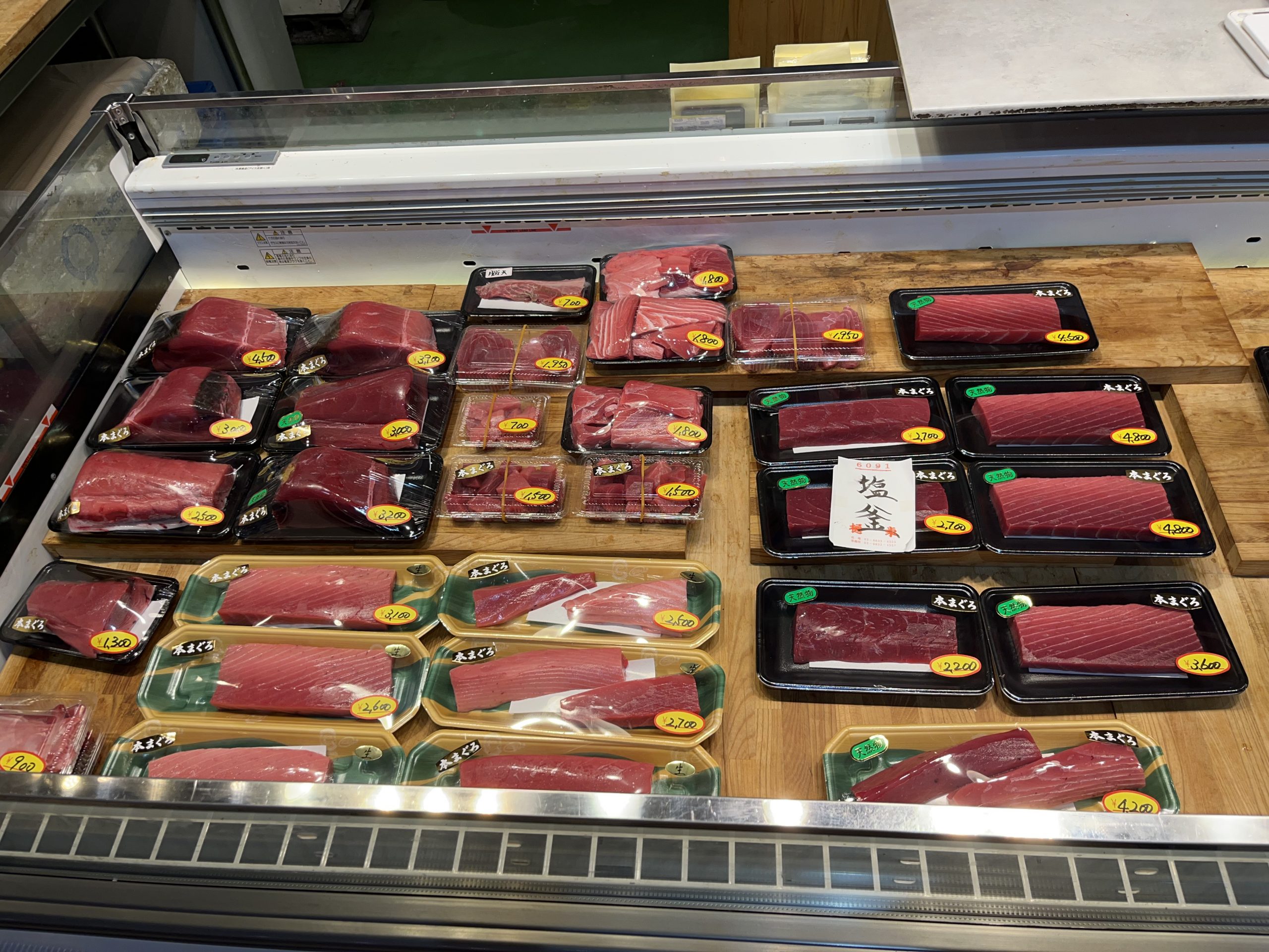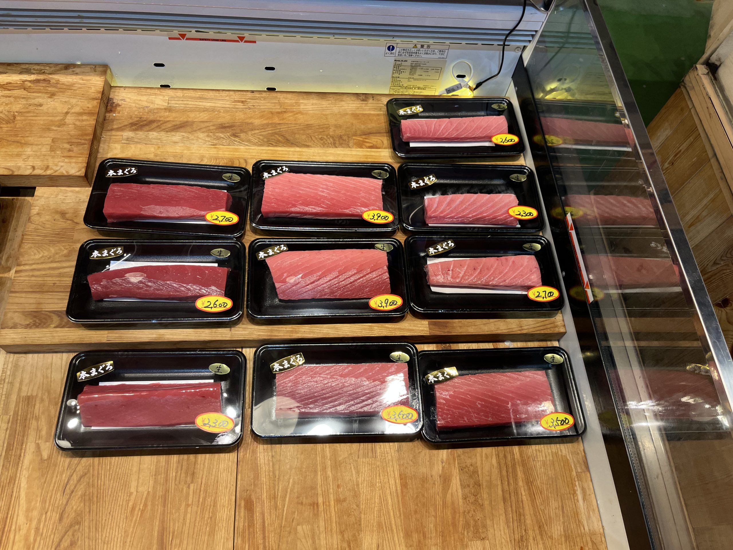 刺身柵といえば樋栄さん!ということで、この日は樋栄さんの柵全般をイチオシとしてご紹介しました!樋栄さんの刺身柵は、本当にどれを食べても脂がのっていて美味しいです!サブちゃんでのお買い物が初めての方には特におすすめですので、「どれを買ったらいいか迷う…」と悩んでいる方は、まずは樋栄さんの刺身柵コーナーをチェックしてみてくださいね!天然ヒラメに天然かんぱち、活〆シマアジ、カツオと、どれも美味しそうすぎますよね…!まとめ買いでお得なアラや頭も要チェックです!さらに樋栄さんの地ダコも人気ですよ!この日の天然本マグロは、塩釜産を中心にしたラインナップになっておりました。