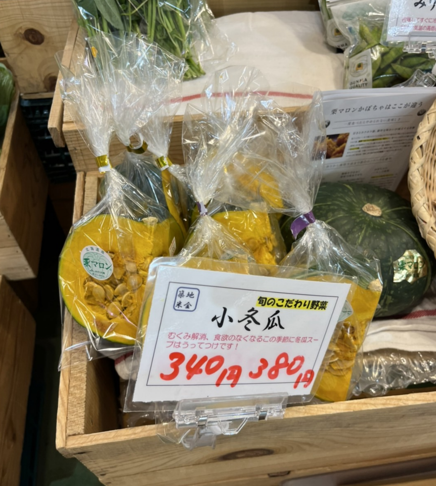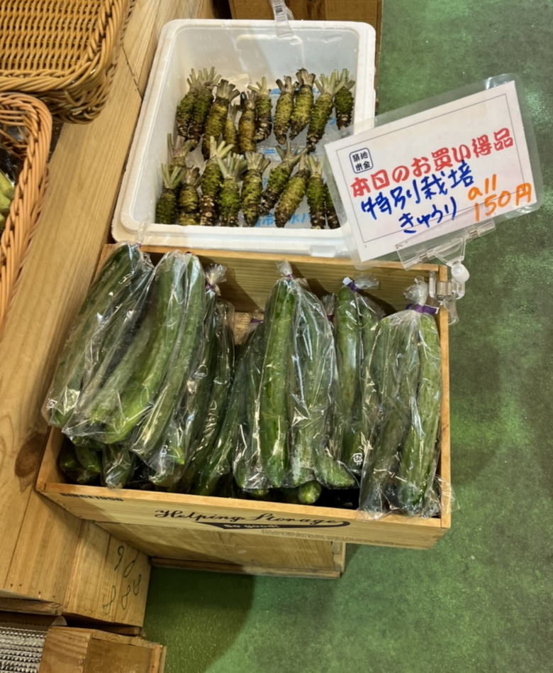 米金さんからは、特別栽培きゅうり&栗マロンかぼちゃ。きゅうりは栽培方法にこだわっていて、ほかでは味わえない一品です!スタッフOも毎週買っております!栗マロン南瓜のほうも、土作りから栽培方法までこだわっていて、こちらもイチオシ商品!ポップは“小冬瓜”になっていますが、誤りです…笑。どちらも、今週末もありましたらぜひお試しください!
