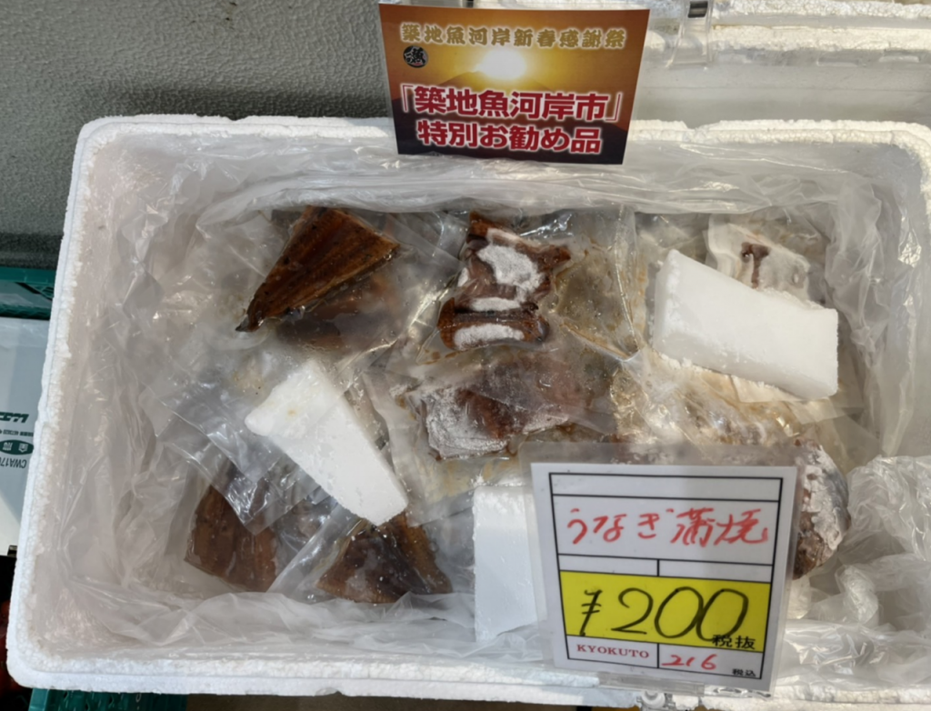 KYOKUTOさんからは、うなぎ蒲焼き。小分けにされたもので、なんとおひとつ200円!ご飯にのせたり、おつまみとしてもとても人気です。「まるまる一本はちょっと多い…」という方には特におすすめ!米金さんのきゅうりとあわせてうざくにしても◎。
