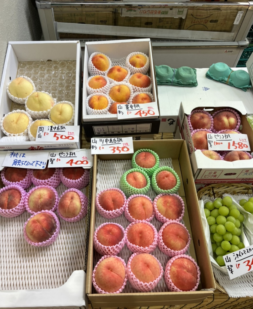 くしやさんからは、ホワイトショコラ&桃。甘さがやみつきになるホワイトショコラ。この日の限定セールで80円引きになっていて、サブちゃんユーザーのみなさんにも大人気でした!桃はまだまだ旬で、この日も品揃えが多かったです!食べ比べにいかがでしょうか!